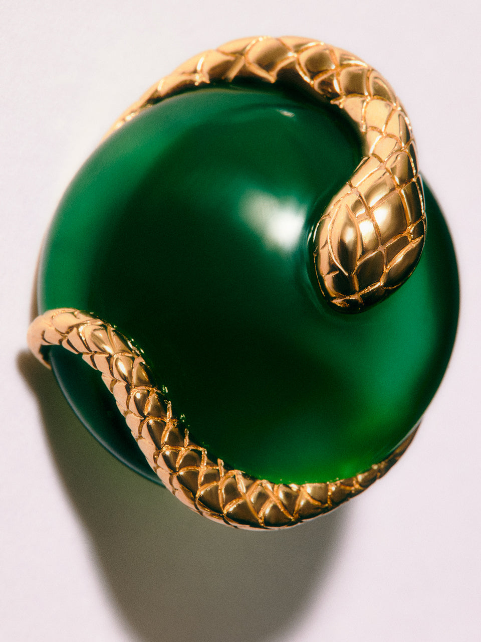 Pendientes largos de plata 925 bañada en oro amarillo de 18K con ónix verde y con forma de serpiente