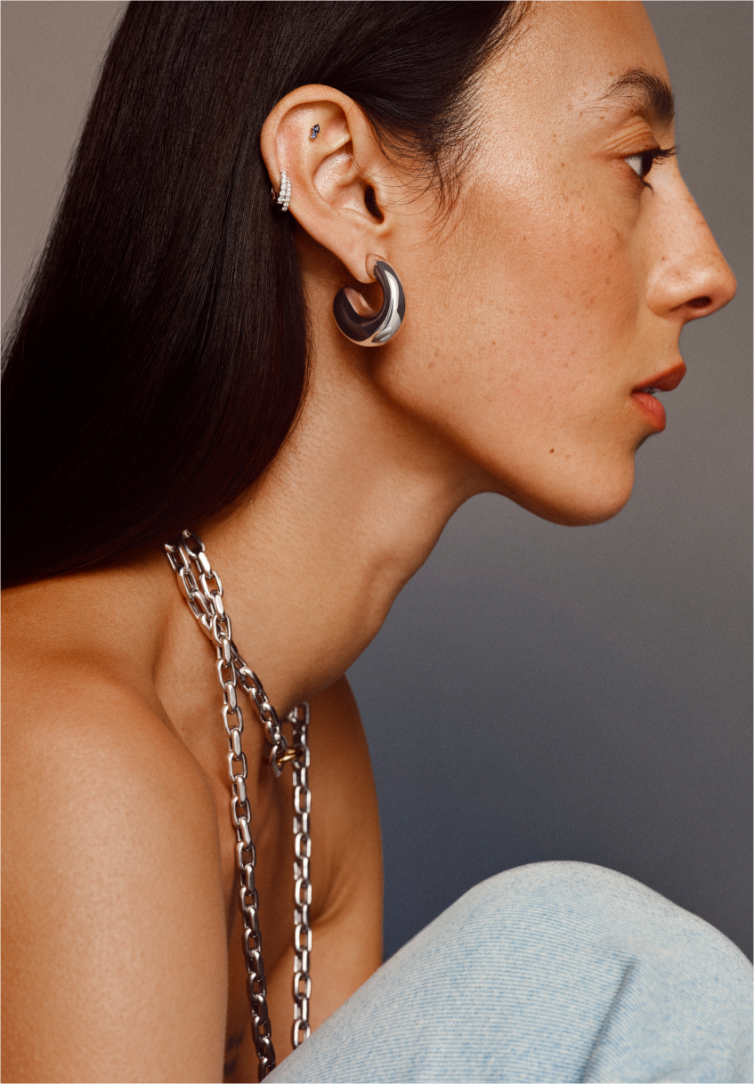 Thick medium hoop earrings made of 18K gold-plated 925 silver