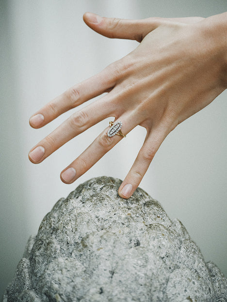 Algunas de nuestras joyas incluyen diamantes lab grown creados en laboratorio mediante procesos tecnológicos avanzados que replican las condiciones naturales de formación. El resultado nos permite explorar nuevas posibilidades creativas: diseños más versátiles, con mayor volumen y una libertad estética que eleva nuestras piezas y nos abre a nuevas siluetas y formas de entender la joyería.
