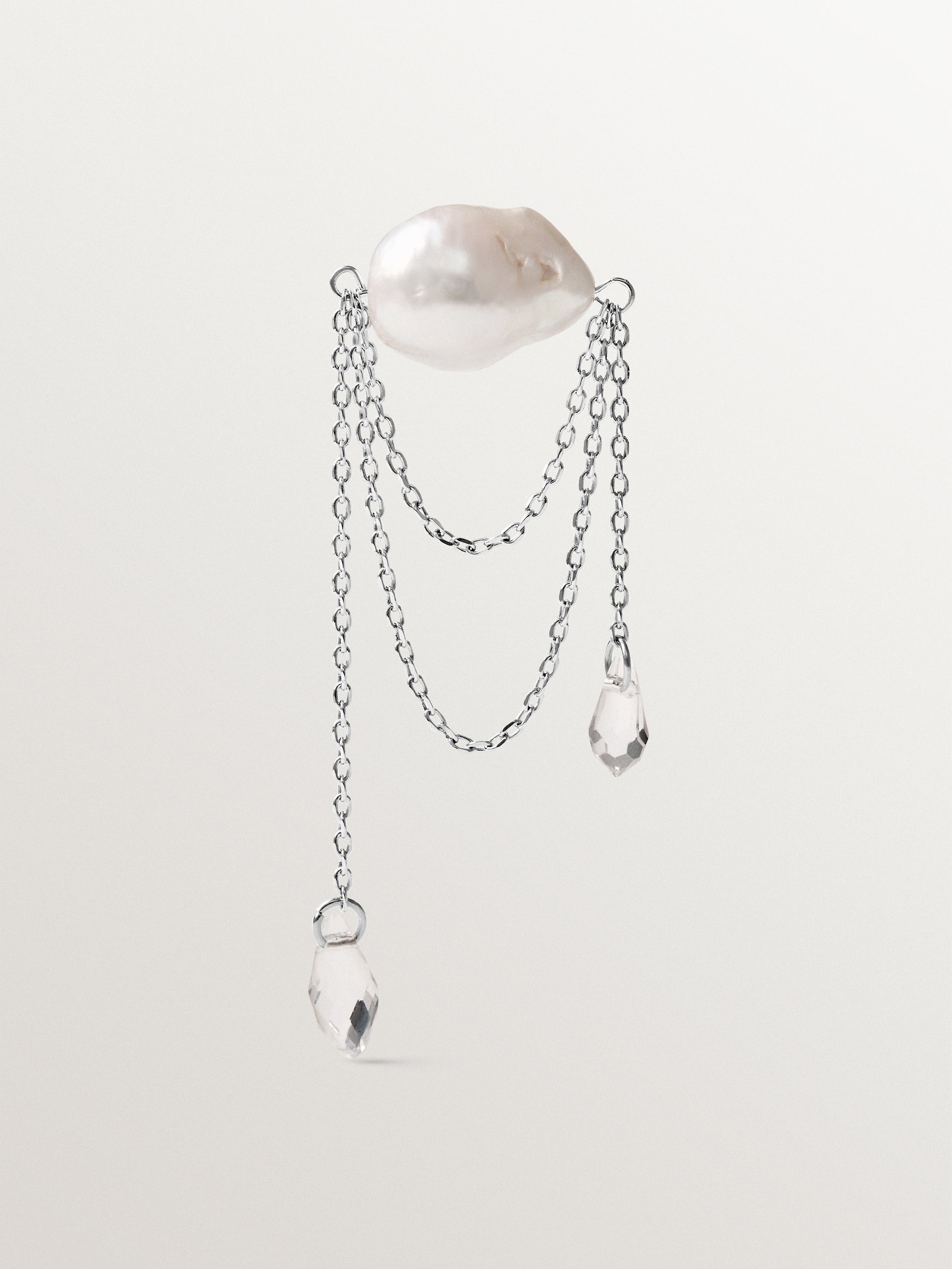 Stud earring with baroque pearls and crystals