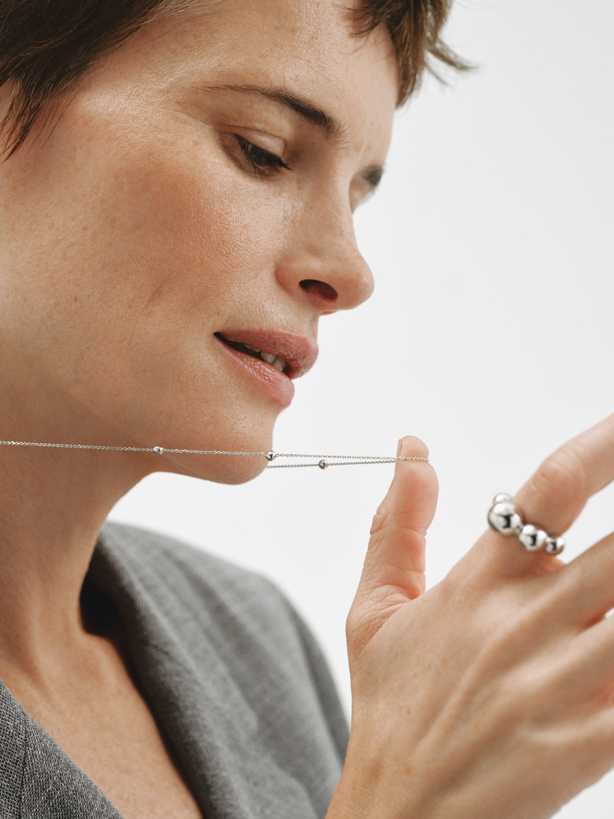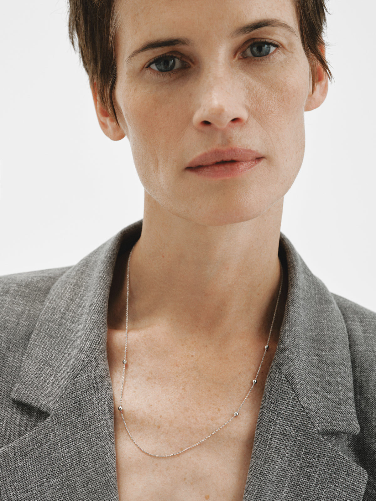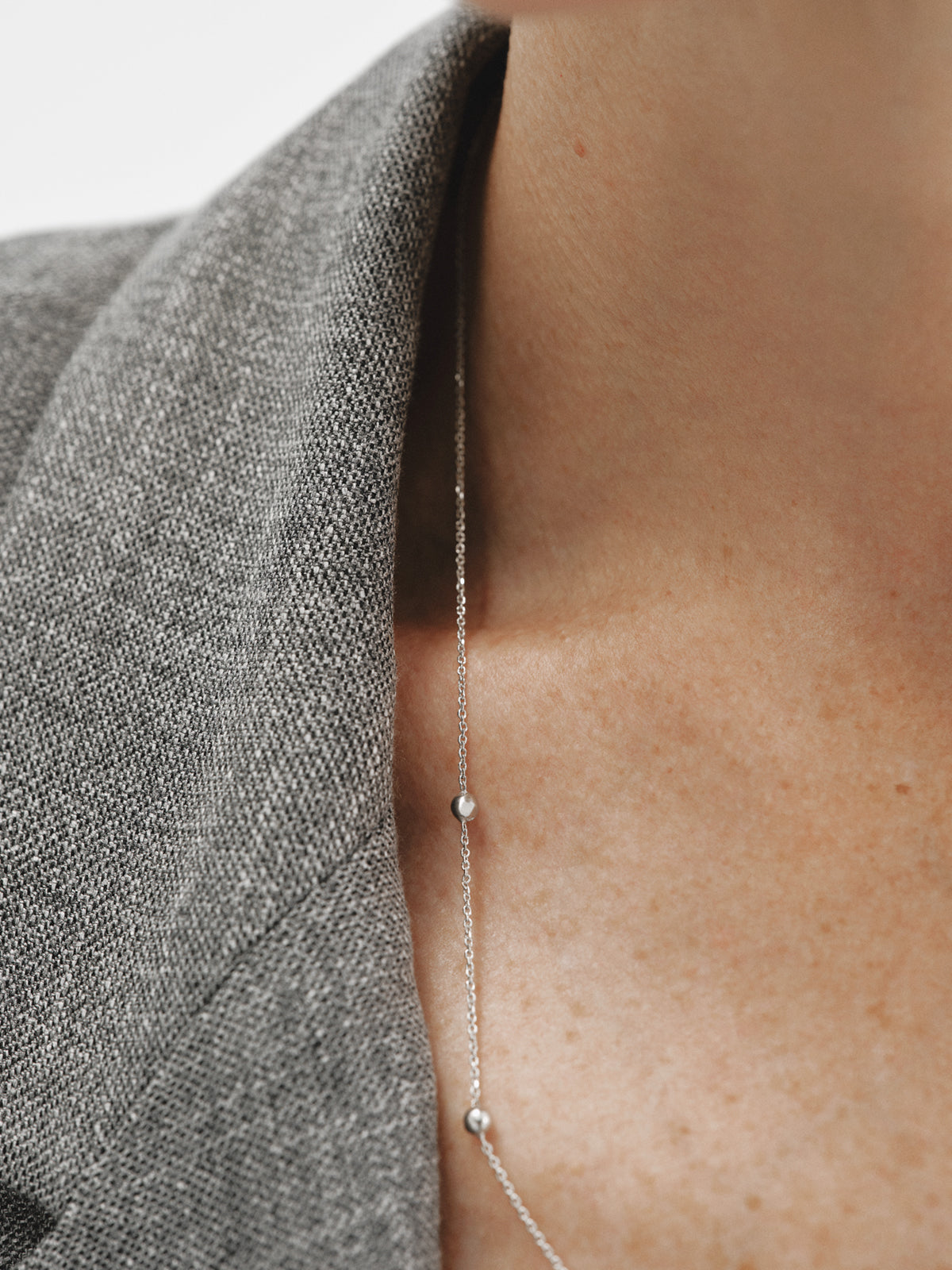 Este colgante de la colección Sfer combina pequeñas esferas distribuidas de manera irregular, creando un diseño fresco y con personalidad. Perfecto para llevarlo solo o combinado con otras piezas y darle un toque único a tu look. Todas las gemas y perlas de esta colección son naturales. Cada una es totalmente única, por eso su tonalidad puede variar respecto a la imagen de referencia.