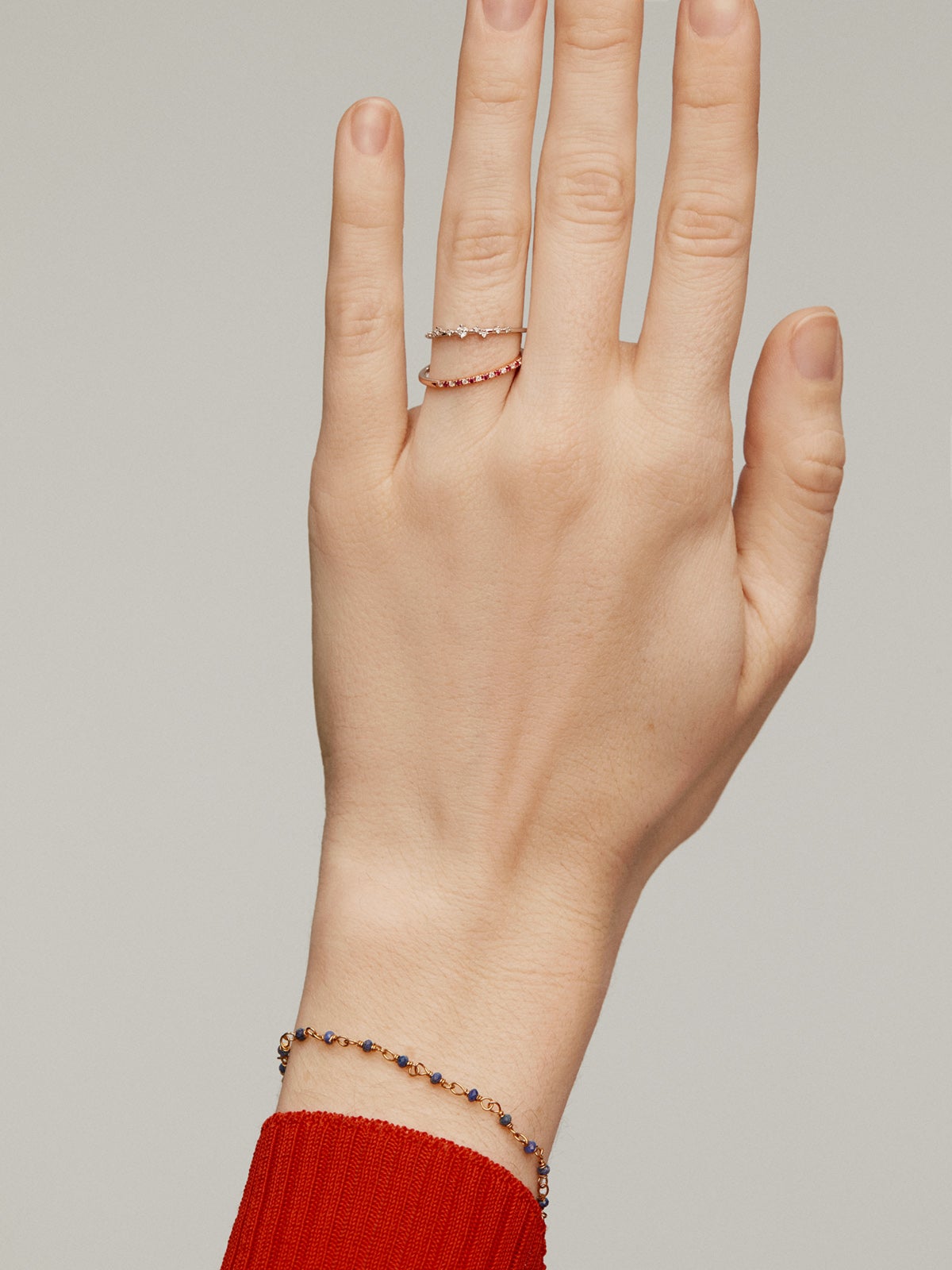 No se trata del clásico anillo de diamantes. Esta sortija de la colección Mic explora una nueva forma de potenciar el brillo de los diamantes con una original silueta que se convertirá en foco de todas las miradas. Todas las gemas y perlas de esta colección son naturales. Cada una es totalmente única, por eso su tonalidad puede variar respecto a la imagen de referencia.