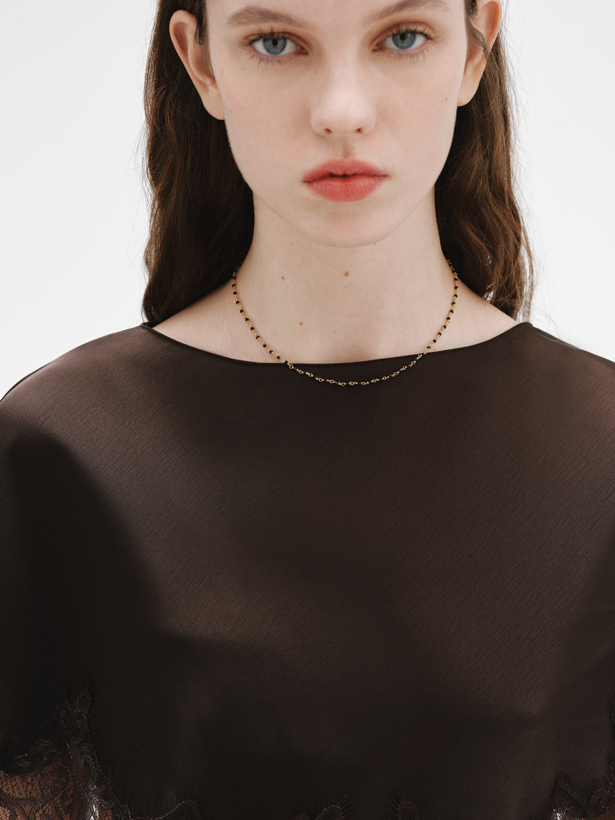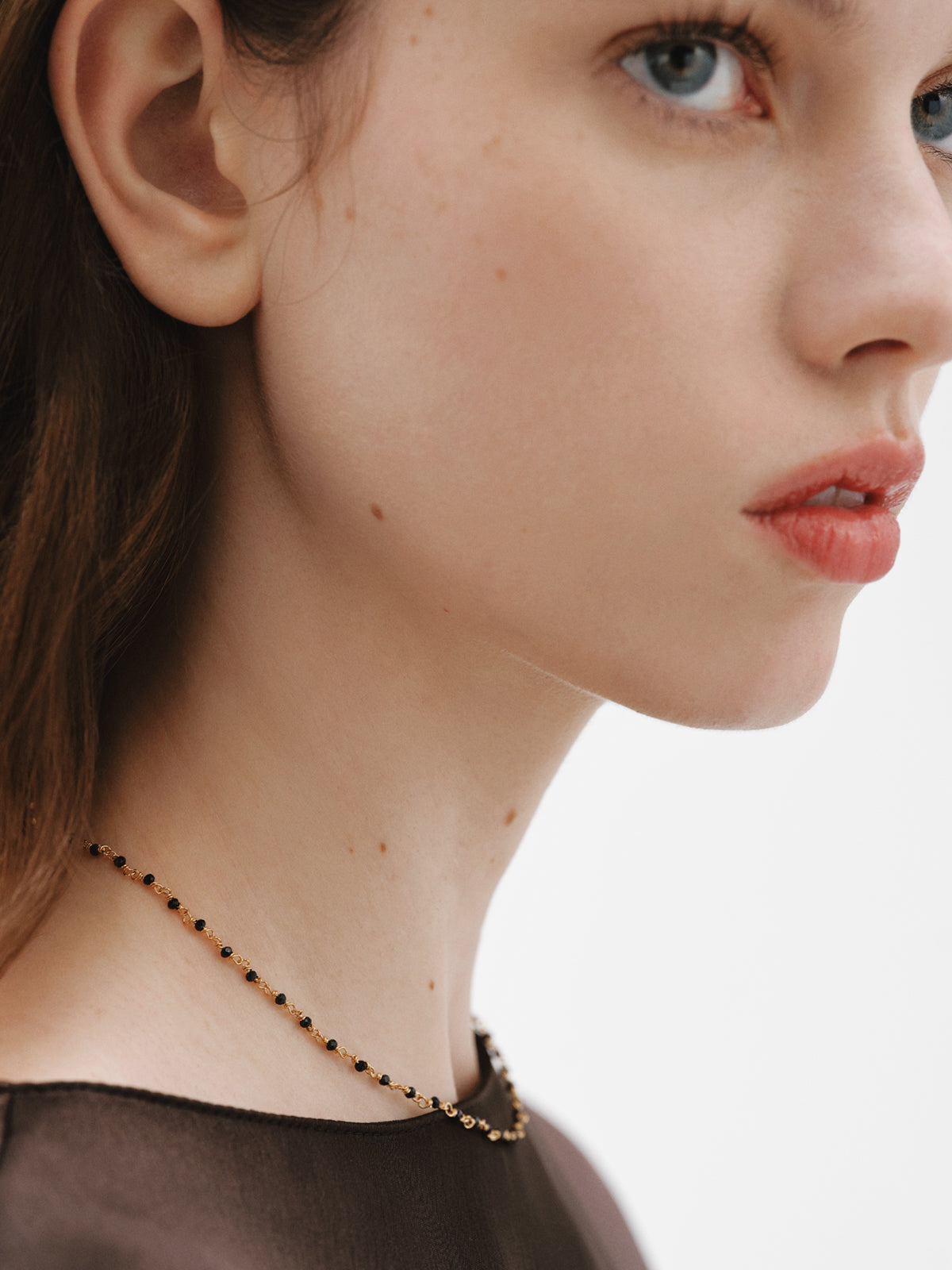 Cadena de plata 925 bañada en oro amarillo 18K con espinelas negras