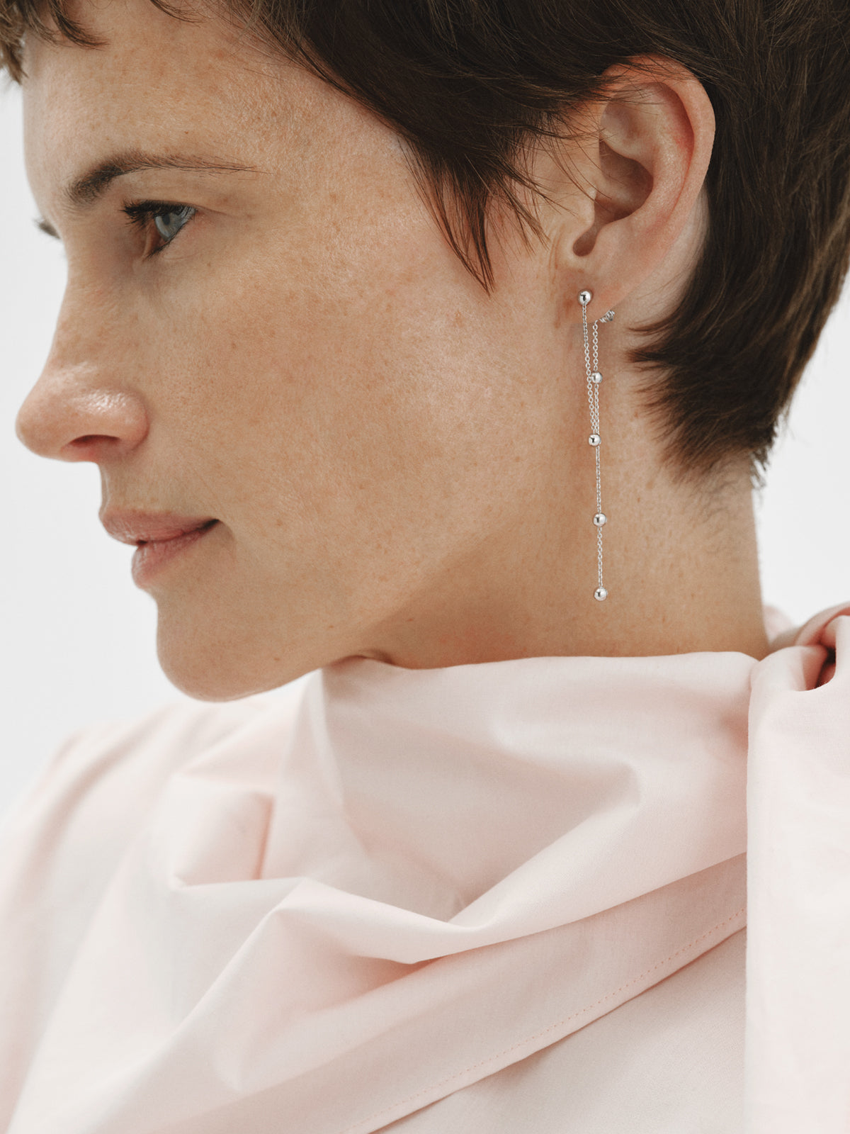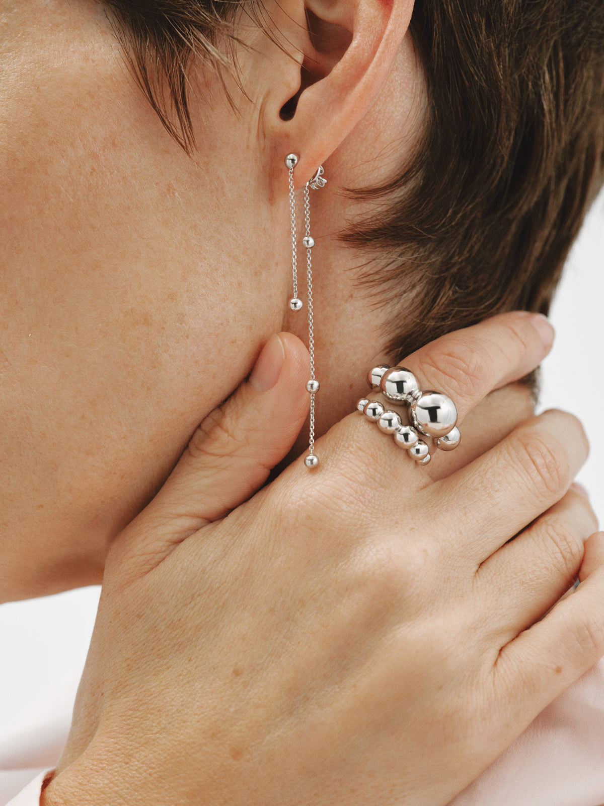 Este pendiente individual de la colección Sfer combina el volúmen y movimiento de las pequeñas esferas con un diseño ligero y moderno. Perfecto para llevar solo o mezclar con otros pendientes y crear el earlook perfecto. Todas las gemas y perlas de esta colección son naturales. Cada una es totalmente única, por eso su tonalidad puede variar respecto a la imagen de referencia.